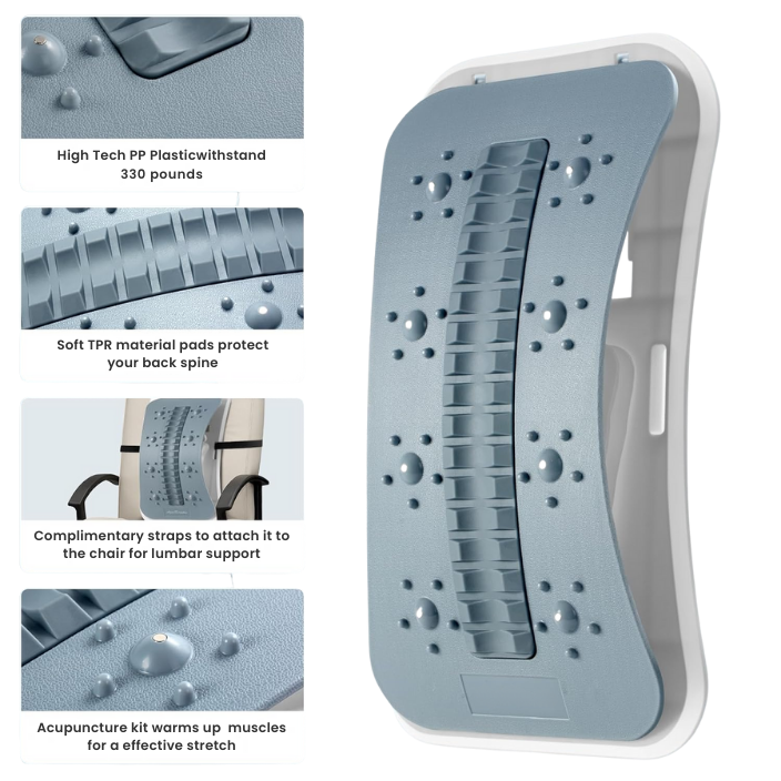Sitting compresses nerves and restricts circulation. The acupressure nodes and decompression promote healthy blood flow, reducing heaviness, numbness, and tingling in the lower back and legs.